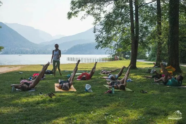 You can also take advantage of the beautiful natural setting of La Crique beach to join a Pilates class. This gentle, low-impact method helps strengthen your core muscles while focusing on your breath. It's the perfect way to enjoy a moment of well-being and relaxation by the lake.